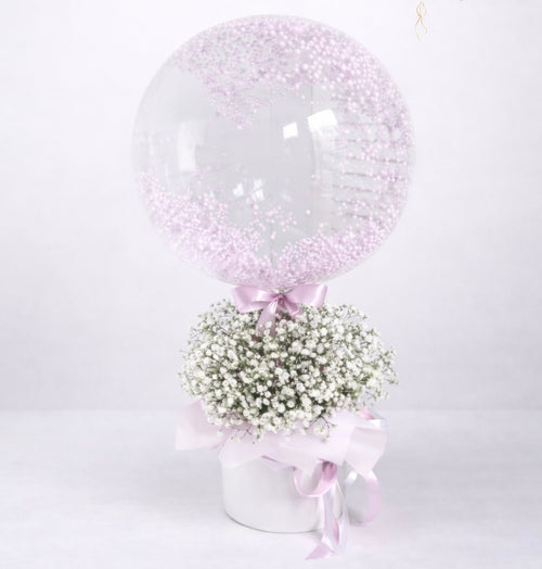 Blush Bubble Balloon & Baby’s Breath Arrangement